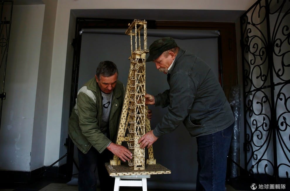 路透社圖為礦井的複製作品,做成的作品幾乎已經超過人的半身高。
