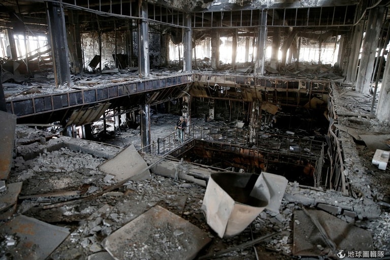 圖為摩蘇爾大學(University of Mosul)的圖書館一景,原本的藏書和建築被恐怖組織伊斯蘭國(IS)破壞殆盡,只剩下斷垣殘壁供人憑弔。