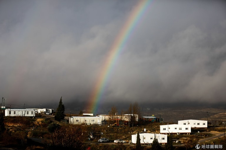一道彩虹出現在約旦河西岸的阿莫納(Amona)前哨站,這裡是以色列的非法佔領區,目前已經有超過 100個猶太家庭定居在此。