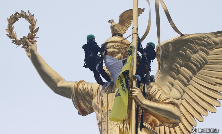 綠色和平組織(Greenpeace)的成員爬上位於首都柏林的勝利女神紀念碑,將女神的嘴巴用抗議布條遮起來,象徵女神因為城市的汙染無法呼吸,希望當局正視柏林空汙的問題。