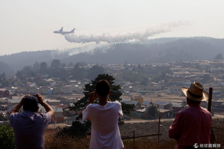 在智利中南部的波特蘇埃洛(Portezuelo),野火已經燒了好幾天,當局除了加派打火弟兄前往滅火外,也請求美國協助,出動一架波音 747-400 超級滅火機從空中灑水,希望可以盡快控制蔓延的火勢。