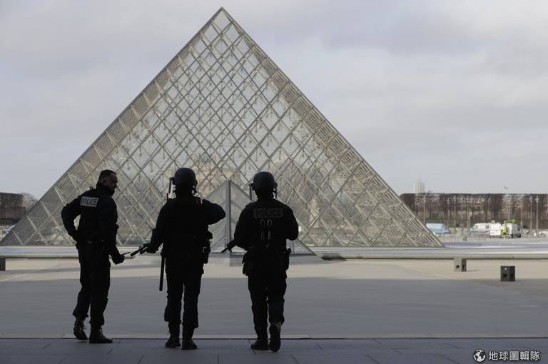 警察在巴黎地標羅浮宮嚴陣以待,防範可能的恐怖攻擊。3號這天,一名埃及男子手持兩把開山刀打算闖進羅浮宮,隨後被巡邏軍人制伏,當時他口中喊著「真主至大」,當局擔心這又是一起恐怖攻擊。