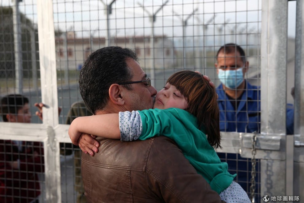 一名來自敘利亞的難民緊緊擁抱好不容易團聚的女兒,這裡是位於地中海的賽普勒斯難民營。