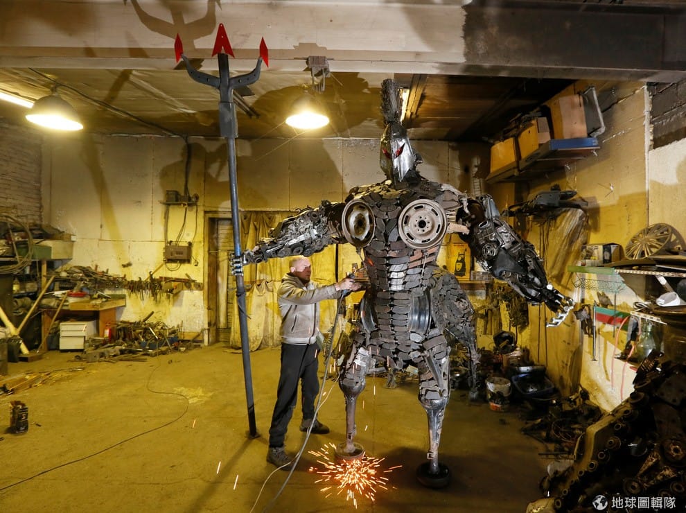 技工庫拉金(Sergei Kulagin)利用下了班的閒暇時間,拿汽車零件打造出一尊巨大的半人馬座雕像,作工之精細令人佩服。