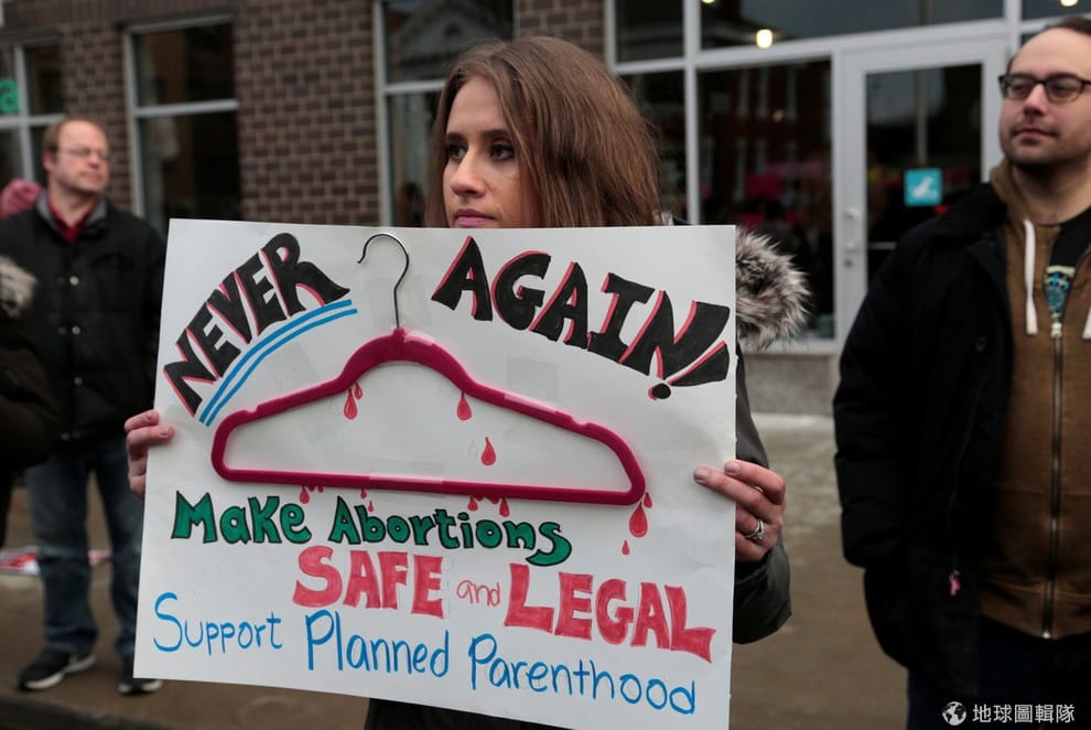 美國計劃生育聯盟(Planned Parenthood)的支持者在底特律(Detroit)的計劃生育診所外表達對墮胎權的支持,由於有些孕婦會用衣架試圖自行墮胎,所以示威者才會拿著畫有衣架的牌子上街抗議。