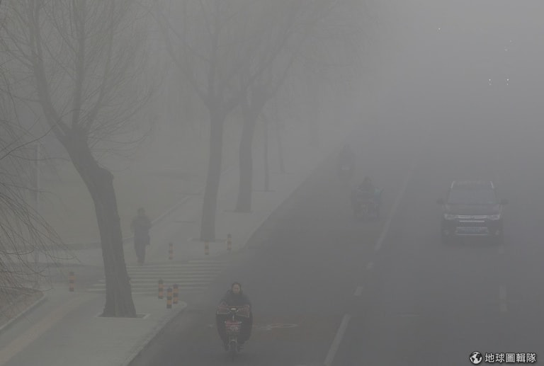 駕駛們行駛在北京的街頭上,嚴重的霧霾幾乎讓什麼都看不清楚。