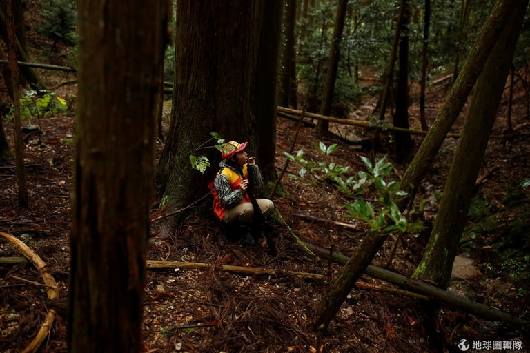 「看看血跡。」兒玉千明一邊在福井縣的深山裡觀察著地上有沒有公鹿的血跡,一邊傳授獵鹿的技巧給一旁的福野葵。