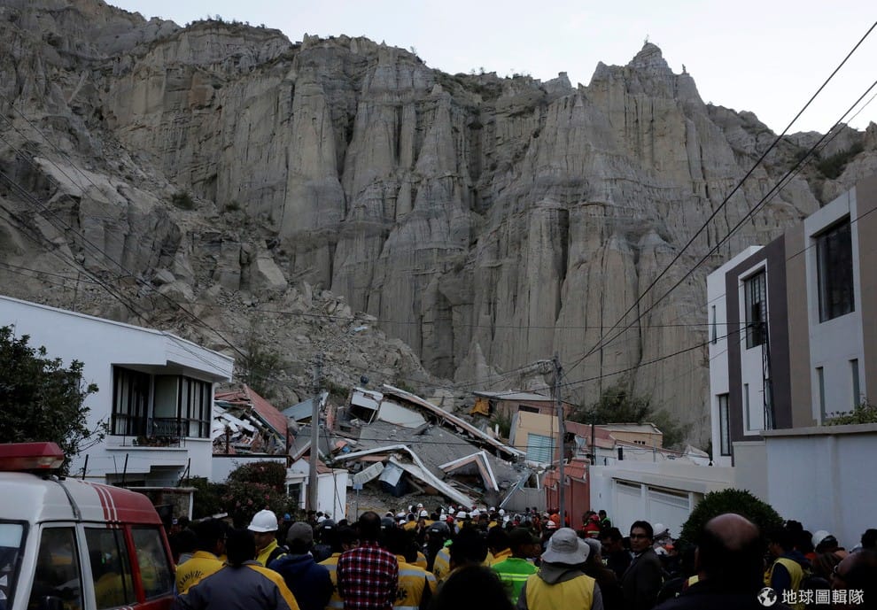 玻利維亞拉巴斯城(La Paz)的自然保護區Auquisamaña在 16號發生土石流,搜救小隊也趕忙到現場執行救援任務。
