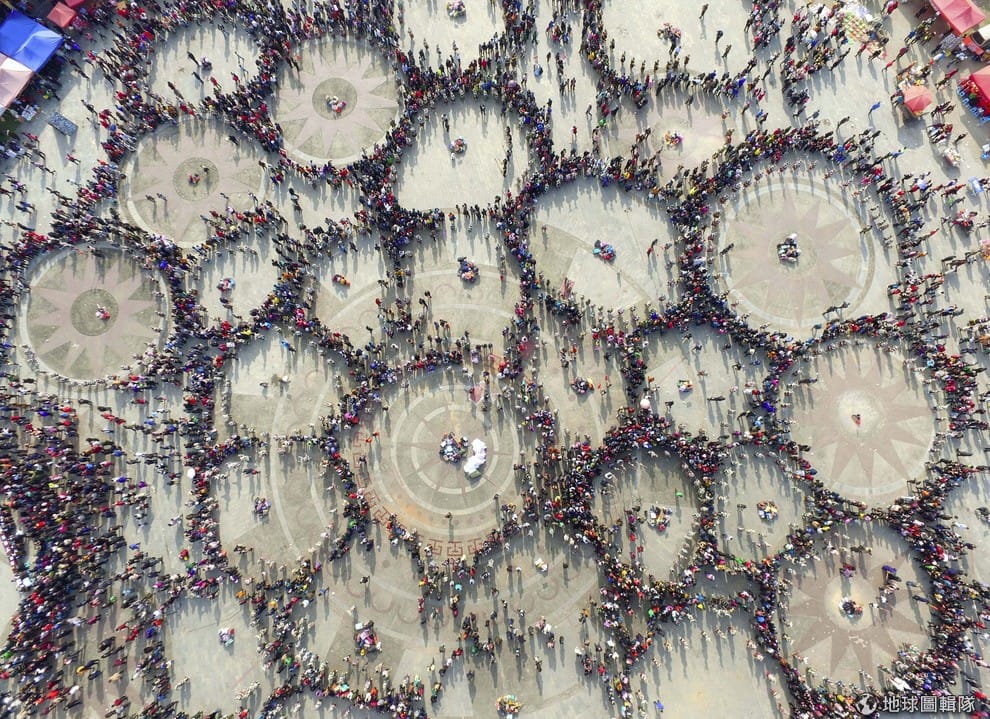 分佈在貴州省的苗族在廣場上圍成一個又一個大圓圈,慶祝著當地傳統慶典。