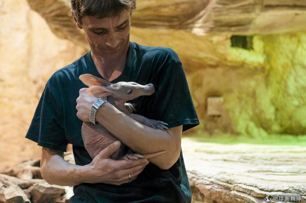 在弗次瓦夫(Wroclaw)的動物園內,一名動物園管理員正在照顧剛出生的非洲食蟻獸。