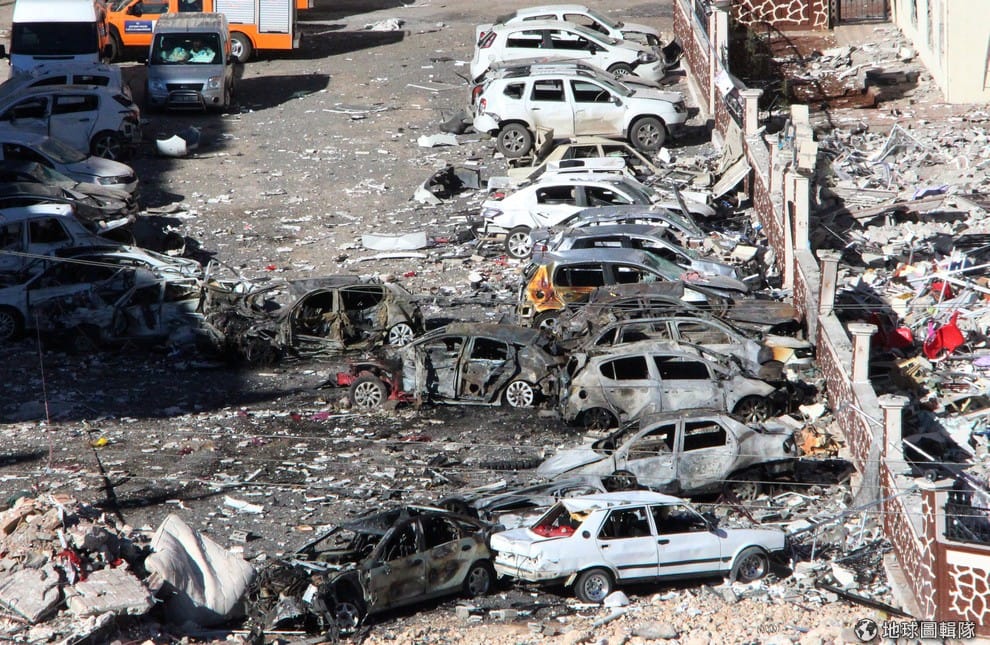 17號晚上,在土耳其東南部接近敘利亞邊界的維蘭鎮(Viransehir),1棟檢察官大樓附近發生汽車爆炸事件,造成 1名兒童死亡,17人受傷。照片拍到了事發後一片狼藉的爆炸現場。