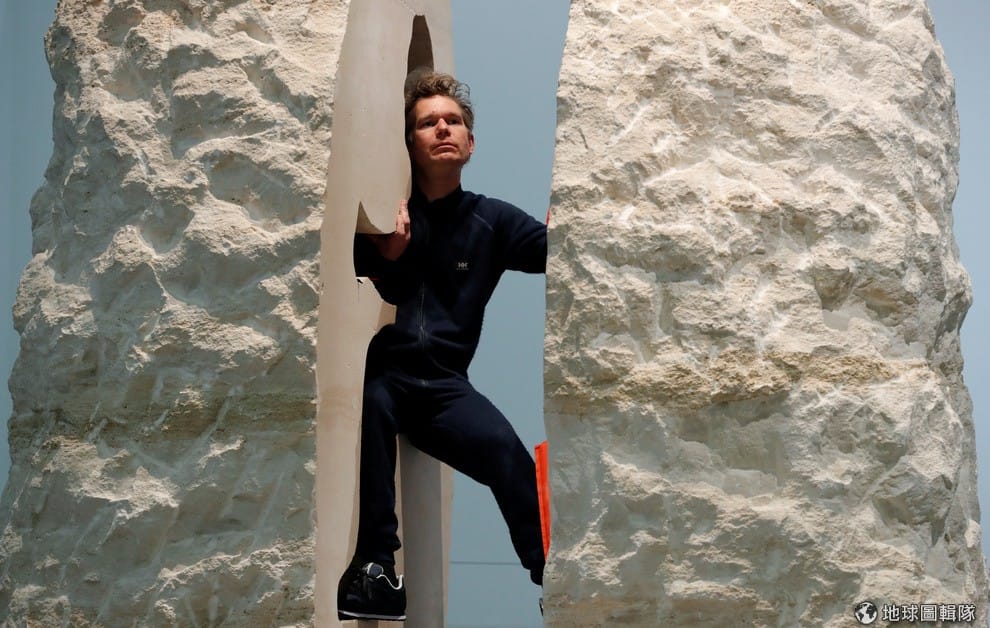 彭許凡提到他待在石頭是想要感受「石頭的老化」,過去他也曾花兩周的時間待在一隻熊的雕塑品裡,還有把自己裝在巨大的塑膠瓶在隆河(Rhone River)上旅行。