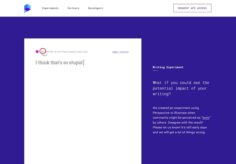 近日,Google母公司字母集團也和《紐約時報》、《衛報》和《經濟學人》合作,開發了一款可以判讀惡意留言的應用程式Perspective,使用者可以鍵入字句測試留言的惡毒程度,如果判讀結果惡意程度超過 80%,那麼這些字句非常有可能冒犯到網友。