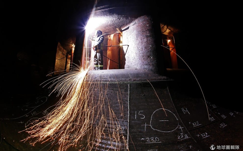 一名焊接工人在西伯利亞偏鄉克拉斯諾亞爾斯克(Krasnoyarsk)的水力發電站工作,冒出的陣陣火花被鏡頭捕捉了下來。