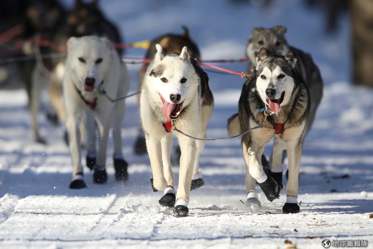 一隊雪橇犬奔馳在阿拉斯加的雪地上,準備在全長 1,610公里的比賽中拿下好成績。
