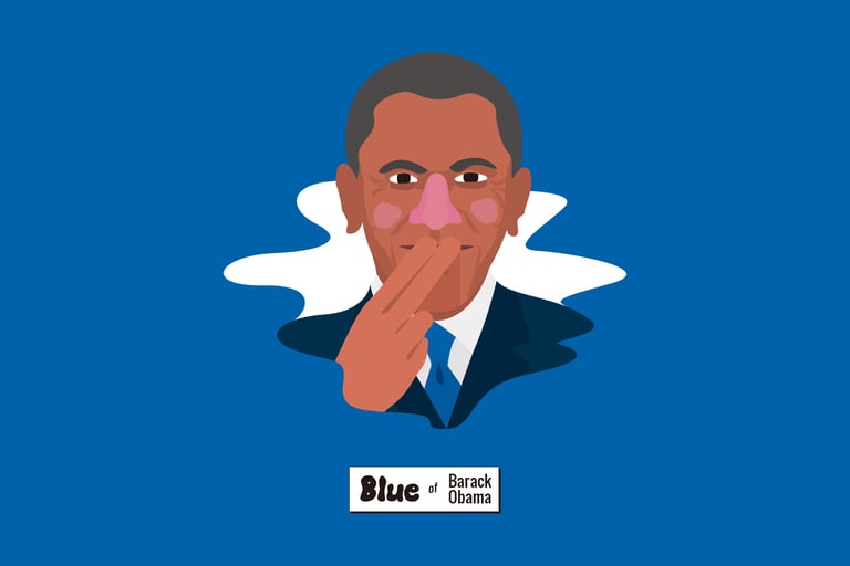 藍色使人平靜、激發創造力,歐巴馬針對San Bernardino ISIS恐怖攻擊演說時配戴藍領帶,以平靜國民的心,藍色也被認為是民主黨的顏色