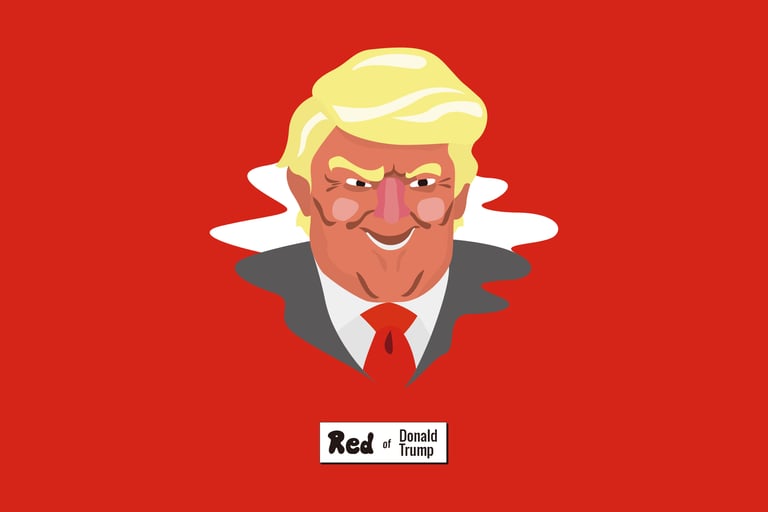 紅色幫助觀察細節、激起情緒,最適合鼓舞人心的場合,紅領帶也象徵權力,英文叫Red power tie,川普競選時以紅領帶為正字標記,和他激進的政治策略不謀而合,似乎希望支持者能和他一樣情緒亢奮激昂