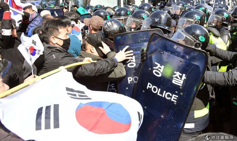 在首爾憲法法庭外,支持朴槿惠的民眾和鎮暴警察發生衝突,造成多人受傷。10號這天,憲法法庭 8名法官一致通過南韓總統朴槿惠的彈劾案,朴槿惠將會立刻失去總統權力,總統一職將交由國務總理暫時代理,並在 60天的時間內選出新總統。