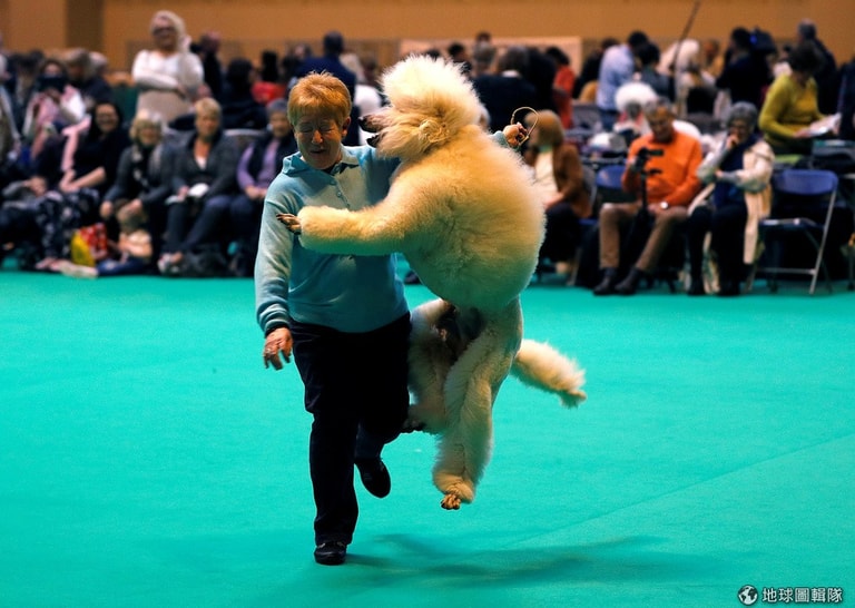 在全球最大的克魯夫茲犬展(Crufts Dog Show)開幕的第二天,一隻貴賓犬騰空而起,興奮地往主人撲去,場面逗趣橫生。