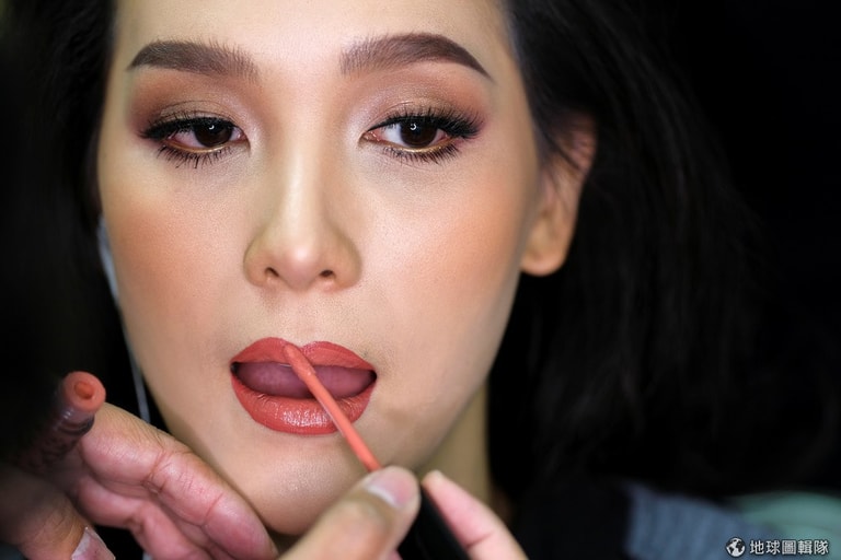 一名參加 2016世界跨性人選美大賽的參賽者,在後台塗上唇蜜準備上台驚艷全場。