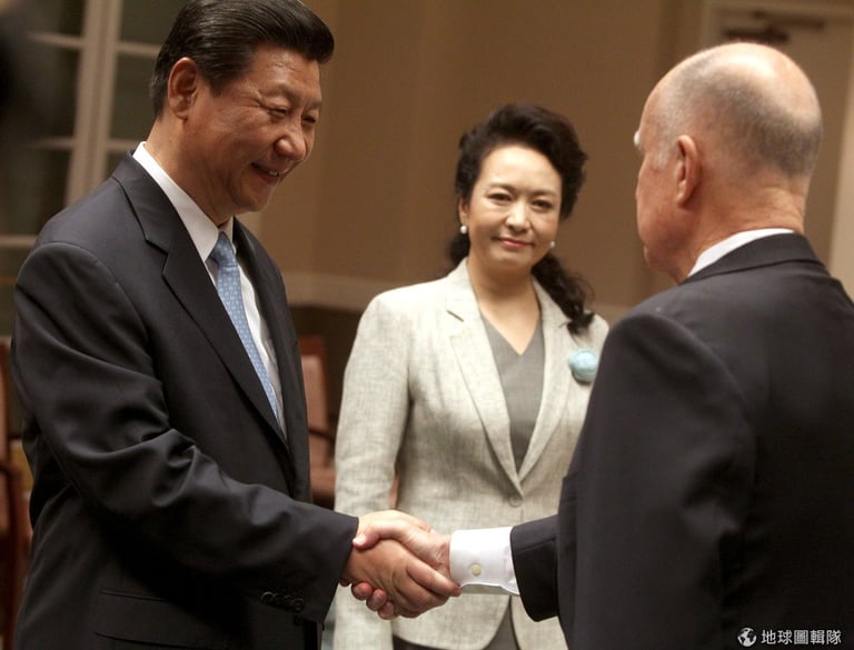 中國國家主席習近平正式接掌大權後,首度出席中美的高峰會,一旁的女性是他的夫人彭麗媛。