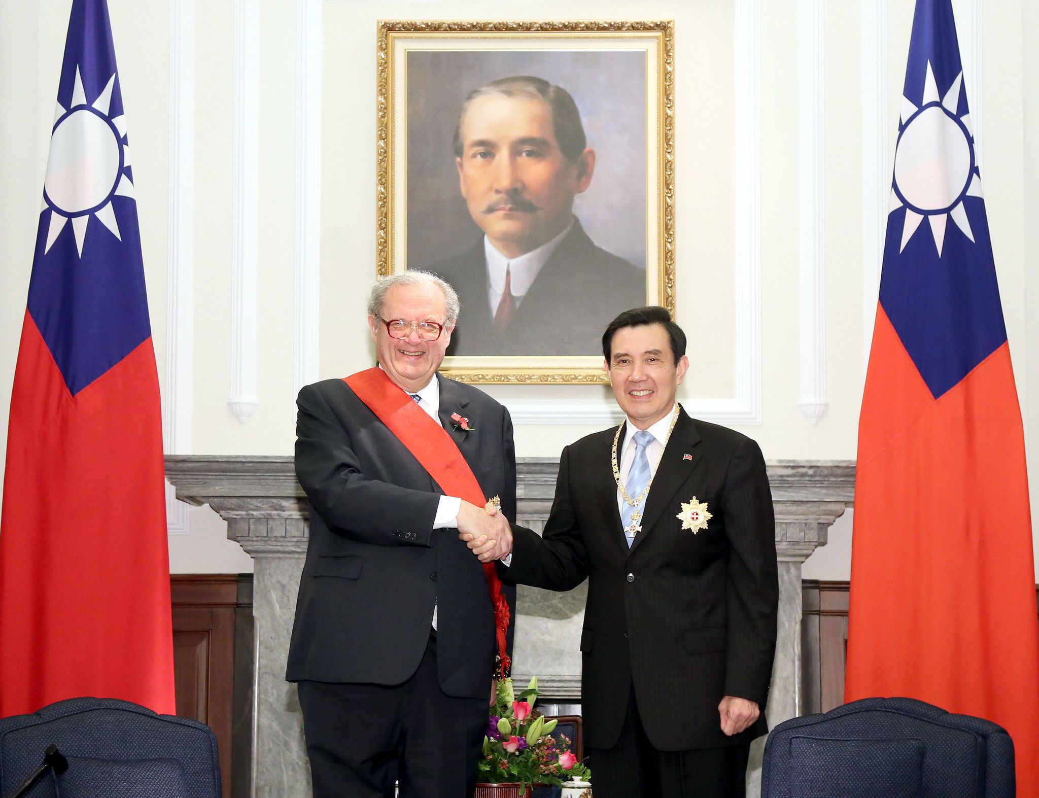 2015年11月,馬爾他騎士團元首費斯汀大教長來到台灣,在總統府和時任中華民國總統的馬英九相見歡。