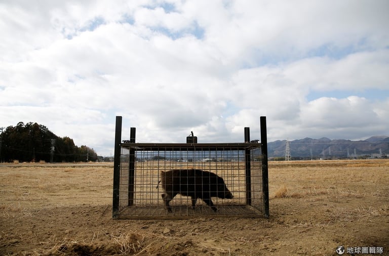 在浪江町的路上,可以看到約 60名工人忙著在過去的市中心修繕房屋,好迎接那些準備返回浪江町的前居民們。就在離工地不遠的地方,可以看到兩隻野豬正在庭院裡尋找食物的蹤跡。