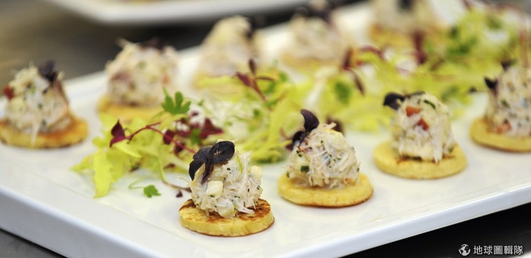 蟹肉料理多樣,被飯店大廚進一步的調味擺盤後,就是一幅美麗的秋季佳餚畫面。圖片來源:Nick Ansell - WPA Pool/Getty Images