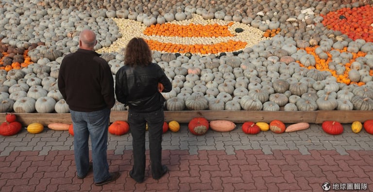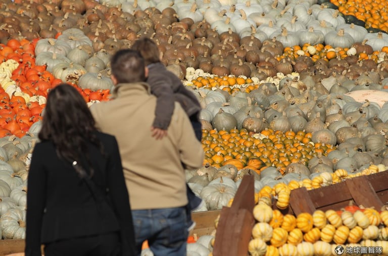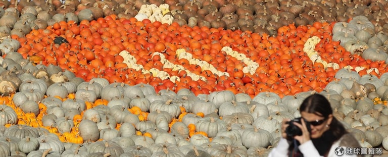 南瓜特展吸引很多遊客前往,種類繁多的南瓜恰好可以拿來排成各種圖案。圖片來源:Sean Gallup/Getty Images