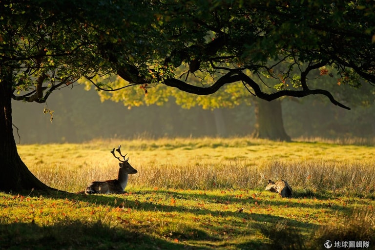 樹下一隻靜靜休憩的成鹿,清晨的天光灑在牠身上,非常美麗的景緻。圖片來源:Christopher Furlong/Getty Images