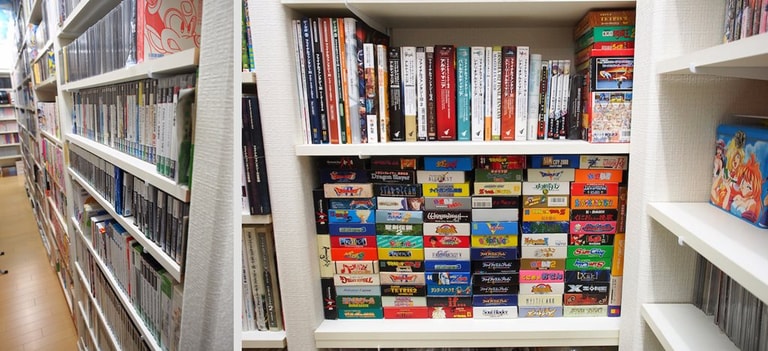 一樓是遊戲間,二樓則是生活起居間和漫畫書籍的收藏環境。可以看到 K 桑也是整理控,每一本書都要很整齊的排列好。新刊或是未讀本都要分門別類,這樣當有一天需要歸納或搜尋時才會輕而易舉找到合適的位置。由於收藏量非常龐大,這個問題我想大家也會有,也就是書籍的重量長時間會導致書架中間彎折,對於地板的壓力負擔也十分的龐大。所以他在客製化房子時也刻意強化了二樓的地板,使其可以負荷更多的重量。