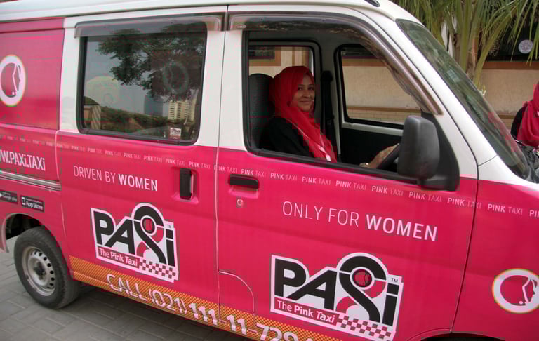 成立粉紅計程車隊Paxi的謝赫(Ambreen Sheikh)說:「我們的駕駛會戴著粉紅色的圍巾,穿著黑色的外套當作制服。駕駛中包含家庭主婦、年輕女性和學生。」