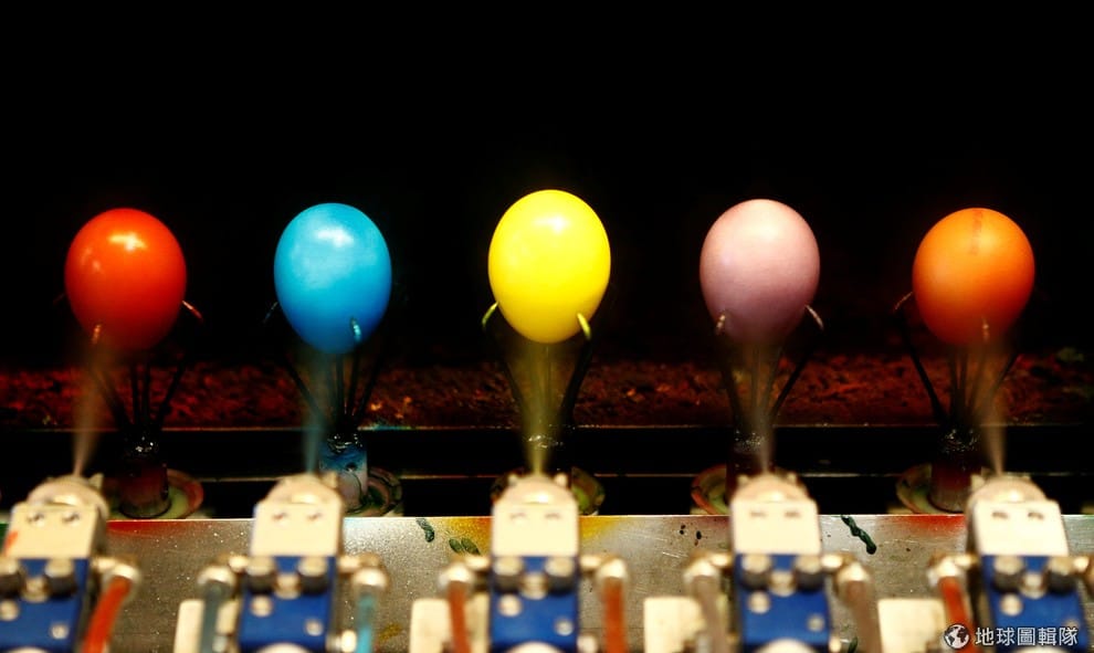 在奧地利一家蛋工廠裡,可以看到機器正在將煮好的水煮蛋噴上各式各樣的色彩。