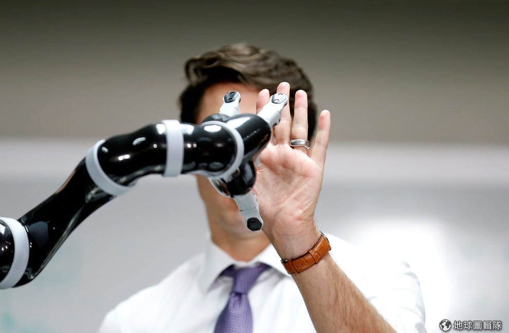 加拿大總理杜魯道(Justin Trudeau)前往魁北克(Quebec)參訪機器人公司Kinova Robotics,並和展示的機械手臂來了個擊掌。Kinova Robotics專注在開發機械手臂,好協助行動不便者處理日常事務。