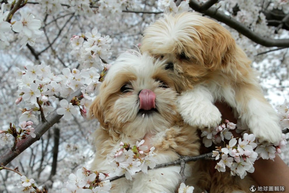 隨著天氣轉暖,華盛頓紀念碑附近的櫻花林也開始綻放成一片粉紅色的櫻花海,人們也帶著寵物來到這裡一起賞櫻。