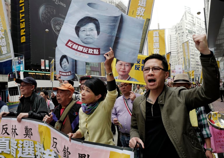 從 1997年香港回歸中國以來,中國當局將香港定位在特別行政區,首長由香港各界人士齊聚的選委會選出,然而選委會人士大部分都是親中人士,民眾表示這是在侮辱他們對香港的自治權。