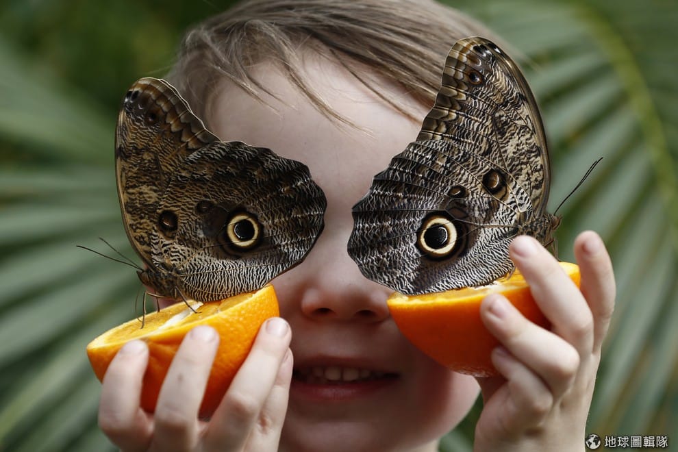 今年 5歲的流意斯(George Lewys)手上拿著多汁的柳丁,吸引兩隻貓頭鷹環蝶駐足享用,這裡是倫敦自然史博物館,目前館內正在展出各種千奇百怪的蝴蝶。