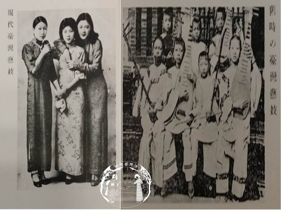 圖為清末和日治時期在宴會上為賓客表演的藝旦,她們除了要精於音律,還要懂得如何應對進退陪客人聊天。