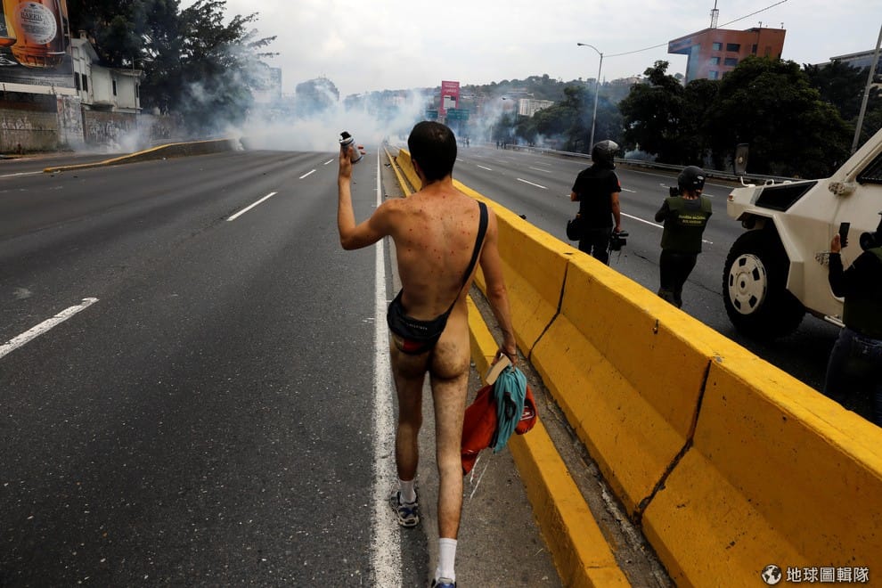 示威者脫個精光,走上街頭表達對馬杜洛(Nicolas Maduro)政權的不滿。