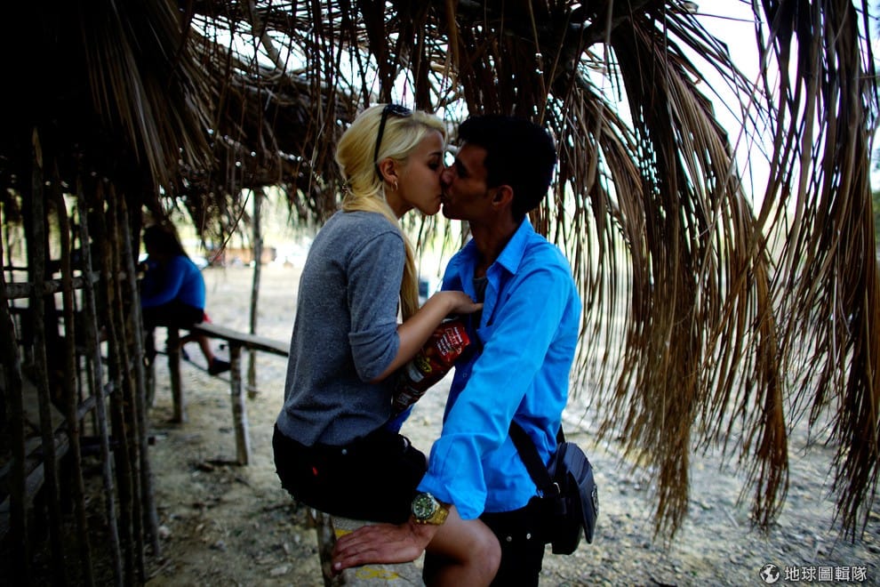 在古巴城市西羅雷東多(Ciro Redondo)近郊的鬥雞場,一對情侶在比賽場外吻得難分難捨。