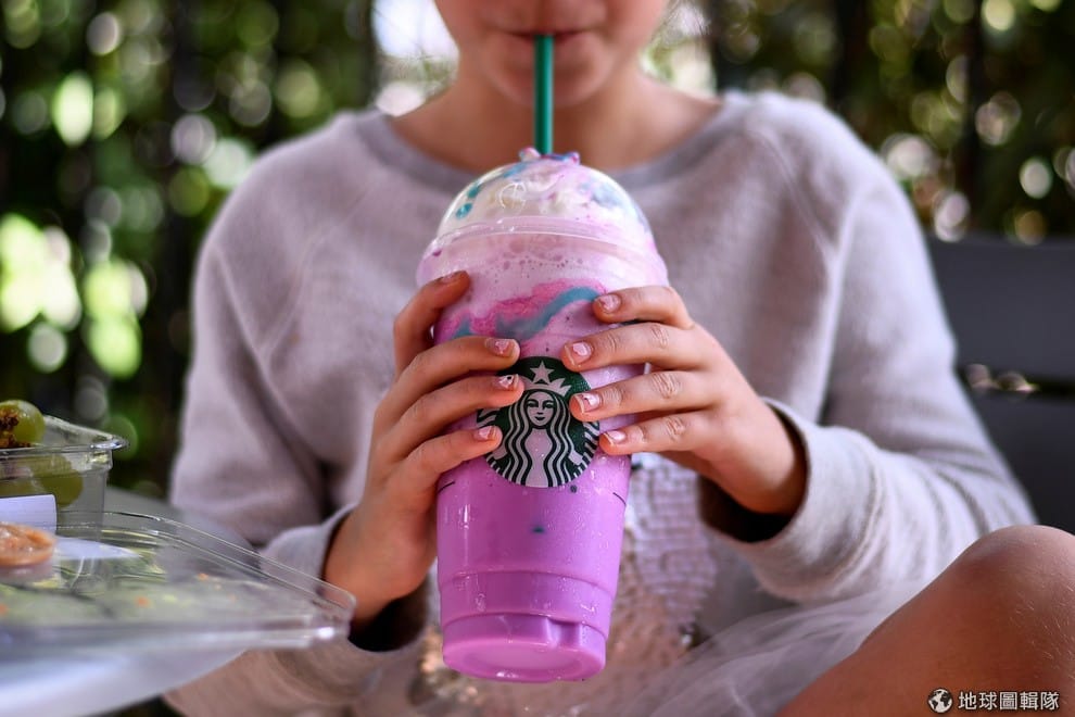 一名女孩正在暢飲連鎖咖啡店星巴克(Starbucks)推出的新品「獨角獸星冰樂」。