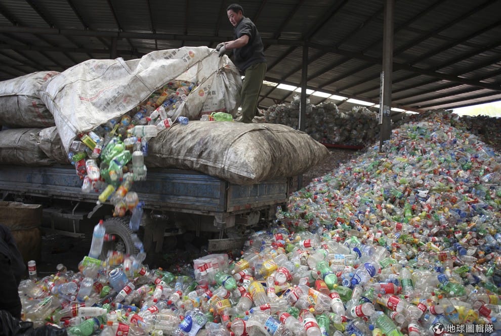 一名中國工人正忙著處理寶特瓶垃圾山。對於博托基尼的發現,有些科學家抱持存疑。