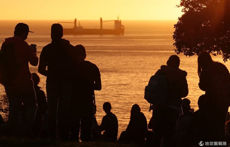 被撤離到山頭的人們觀看著一望無際的海平面。24號,智利沿海城市比尼亞德爾馬(Vina del Mar)發生規模 7.1的強震,由於當局擔心發生海嘯,也緊急將人們撤到山上避難。
