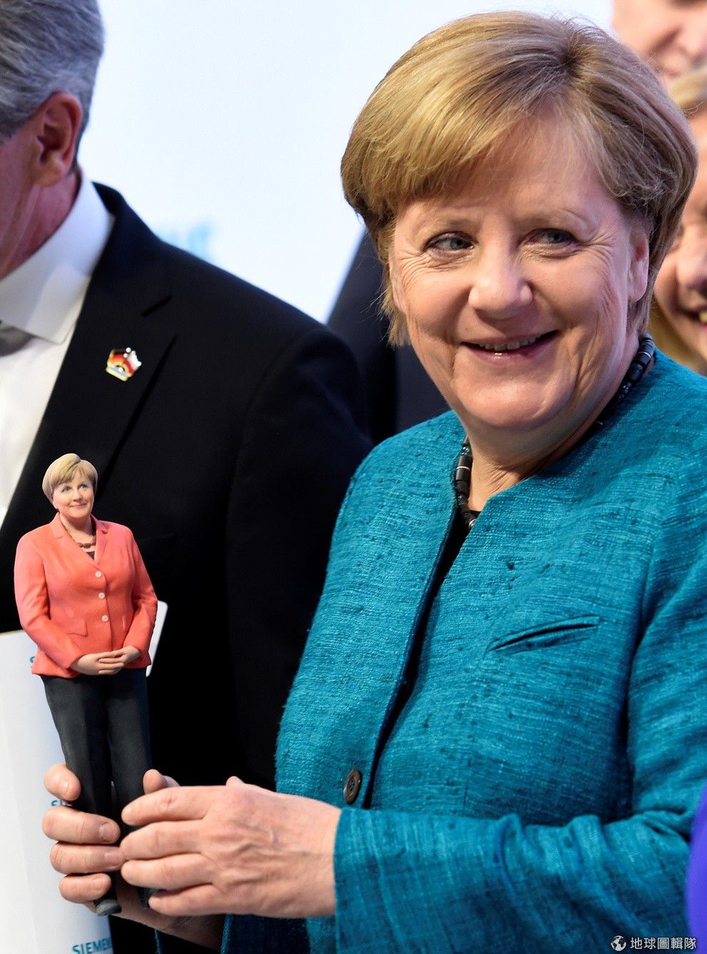 德國總理梅克爾(Angela Merkel)前往德國最大的工業博覽會「漢諾威展覽」參訪,並在媒體前拿著用 3D列印技術製成的自己。