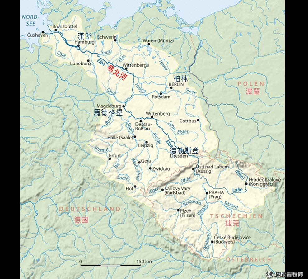 gettyimages照片中的易北河,在這次的洪災中水位一度上升到將近10公尺高,比起平日的4公尺水位高出許多