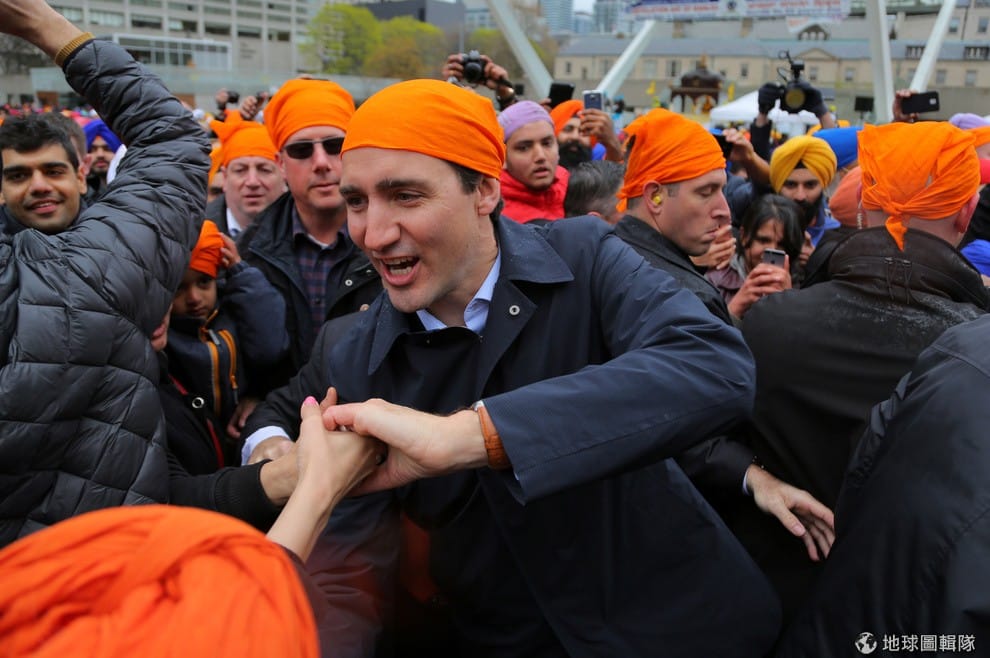 加拿大總理杜魯道(Justin Trudeau)頭戴「頭巾帽」(turban),出席安大略省錫克及謁師所議會(Ontario Sikha & Gurdwara Council)所舉辦的「卡爾沙日」(Khalsa Day)。