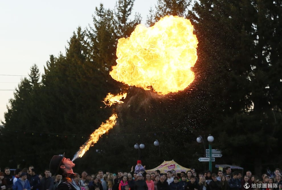 隨著春天即將邁入尾聲、夏天的腳步逼近,「埃拉金的摩托車劇場」(Moto Theatre of Alexander Elagin)也在俄國城市克拉斯諾亞爾斯克(Krasnoyarsk)的中央公園舉行了一場噴火表演秀,慶祝摩托車騎行季節的到來。