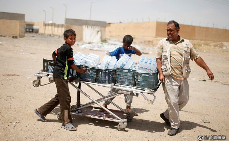 在伊拉克當局和恐怖組織伊斯蘭國(IS)對峙的摩蘇爾城(Mosul),志工們將一罐罐礦泉水送給因為戰事逃離家園的難民,希望能一解他們的燃眉之急。