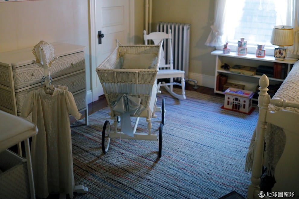在麻州美國前總統約翰甘迺迪(John F. Kennedy)的故居,房間內展示著他嬰兒時期躺過的搖籃,再過不久就是約翰甘迺迪的百歲冥誕。