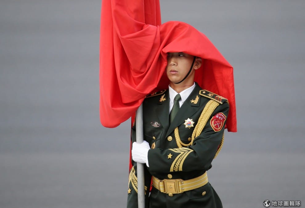 中國─國旗蓋臉的衛兵